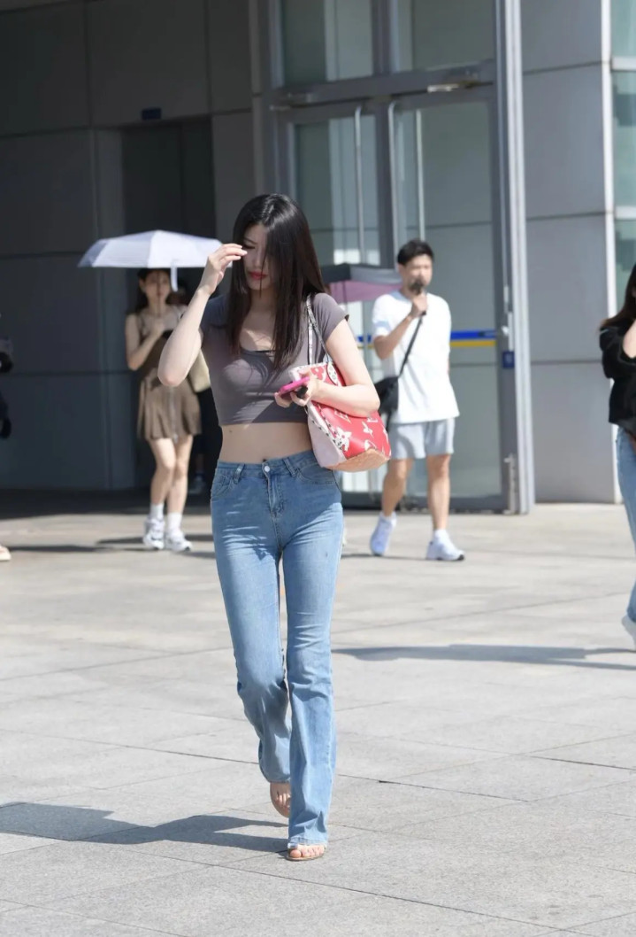 > 牛仔裤 美女 拍照姿势 街拍 好身材